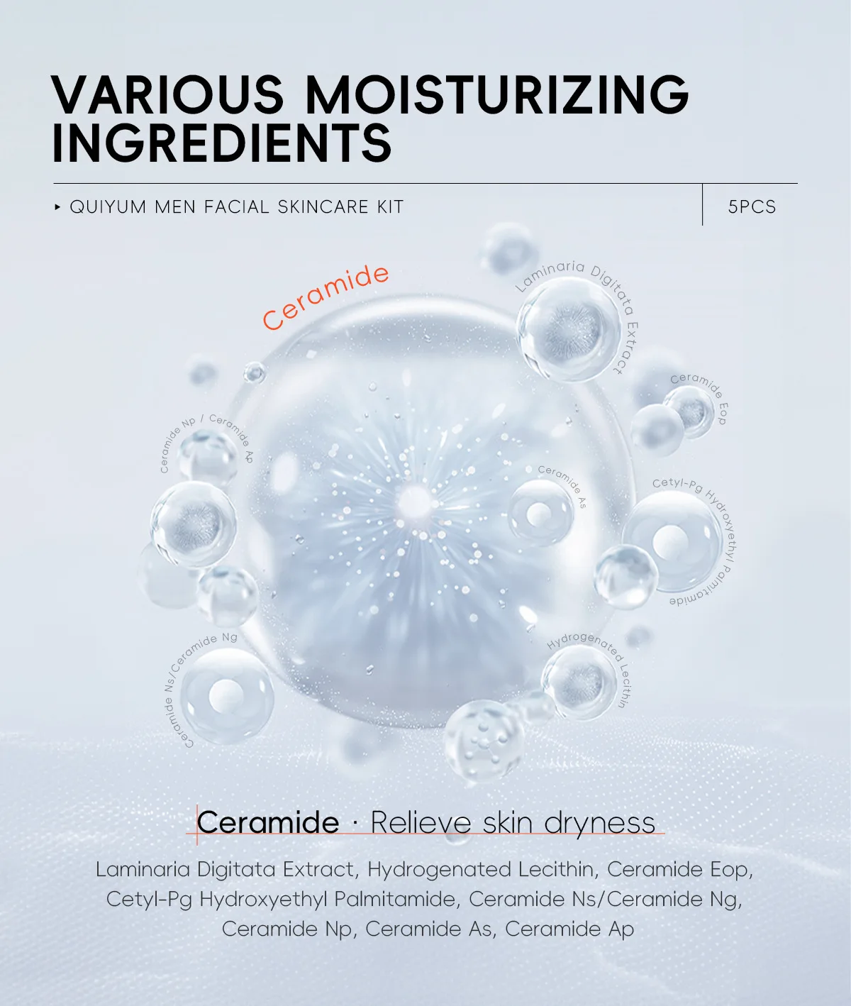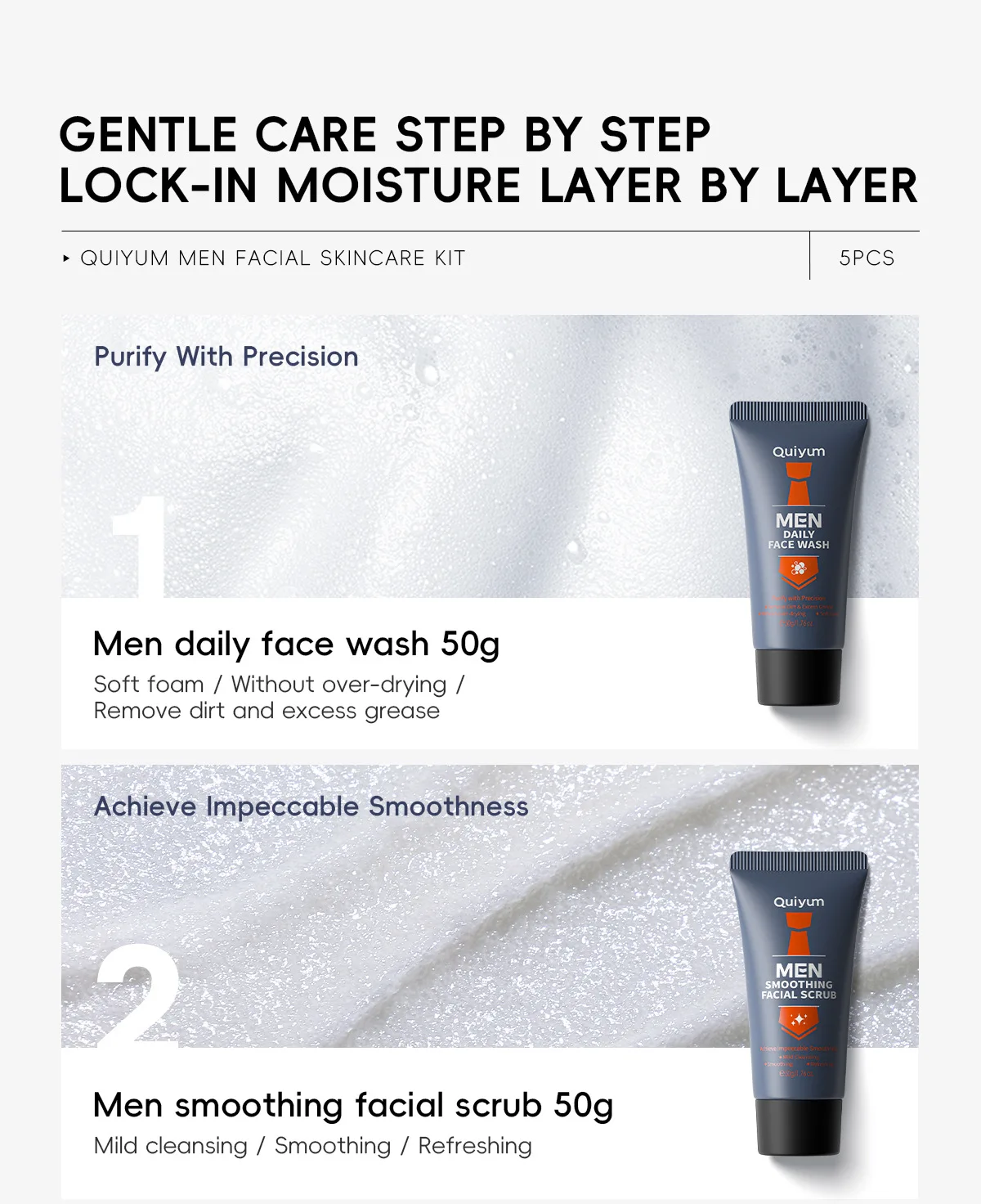 QUIYUM Men Facial Skincare Kit 5pcs Set Oil Control Moisturizing Clean Smooth Fine Lines Skin Care Set
